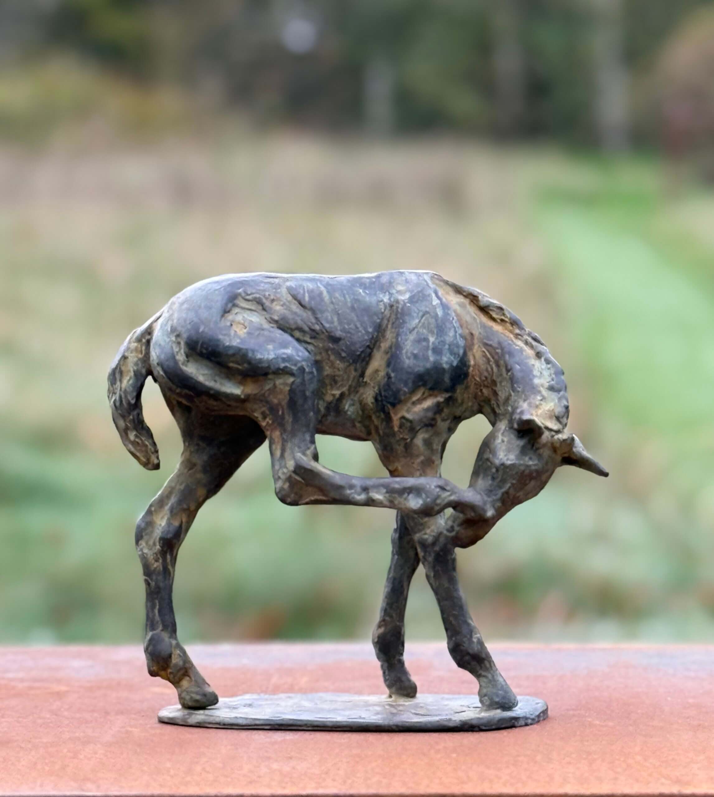 Foal sculpture bronze scratching Brigitte Boss